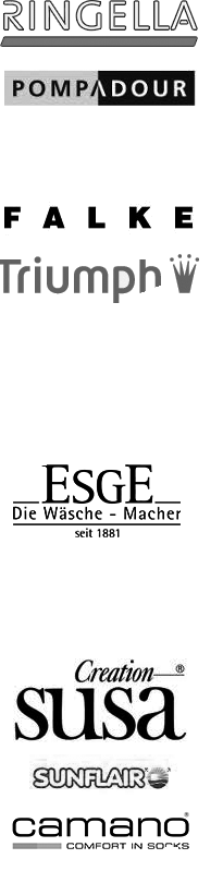 Triumph, Ringella, ESGE, Pompadour, Cito, Sunflair, Sunmarin, Susa, Cawö, La Plus Belle, Cherie Line, Nina v.C., Camano, Falke
